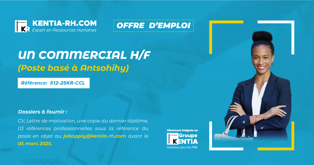 KENTIA-RH.COM sarl est à la recherche d'un Commercial h/f basé(e) à Antsohihy, passionné(e) et déterminé(e) à atteindre des objectifs ambitieux.